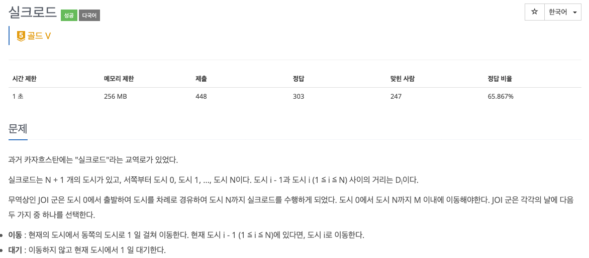 - 도시 0 → 도시 N까지 정확히 N번 이동해야 함 (각 이동은 하루 소요)