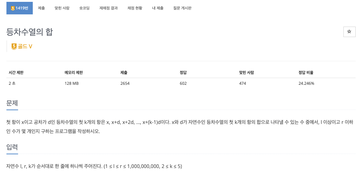 [골드 5] 백준 1419 - 등차수열의 합 (파이썬)