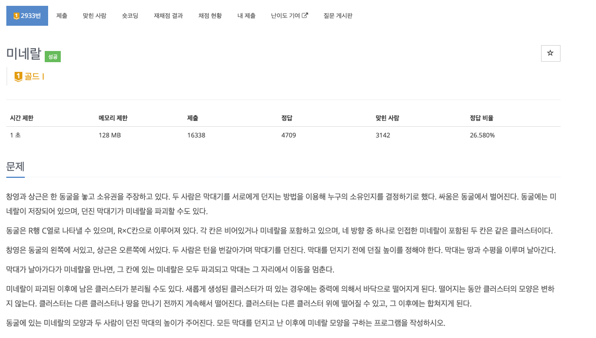 - 미네랄 덩어리(클러스터)는 상하좌우 인접한 미네랄끼리 연결되어 있다.