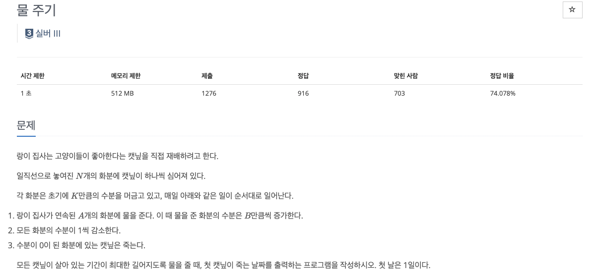 # 백준 23351 - 물 주기