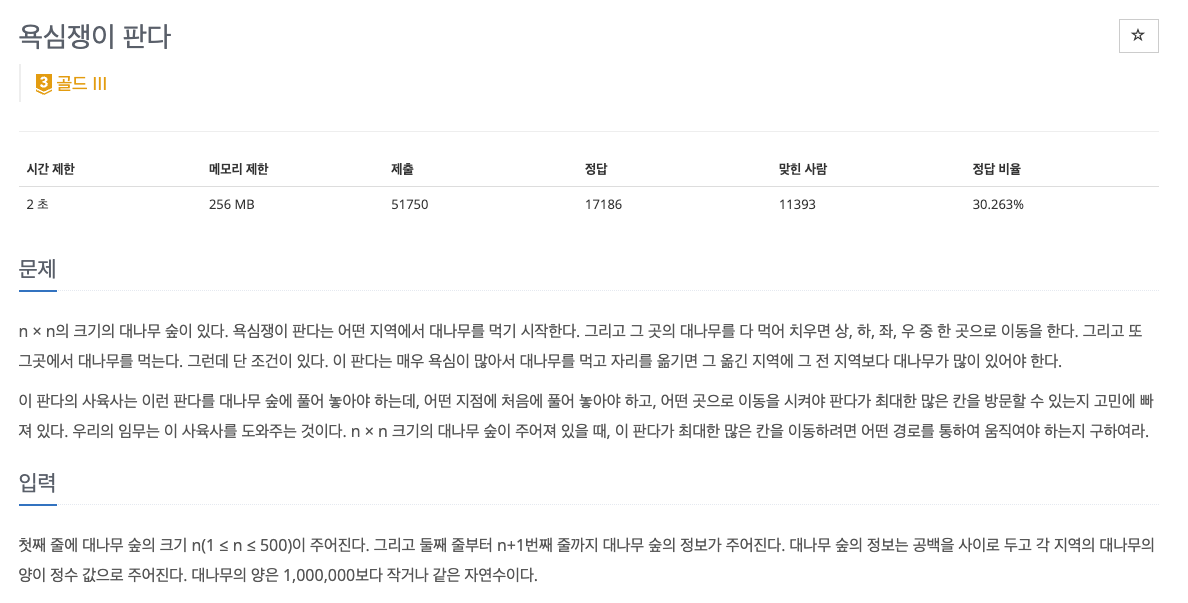 - 판다는 현재 위치보다 더 많은 양의 대나무가 있는 칸으로만 이동할 수 있다.