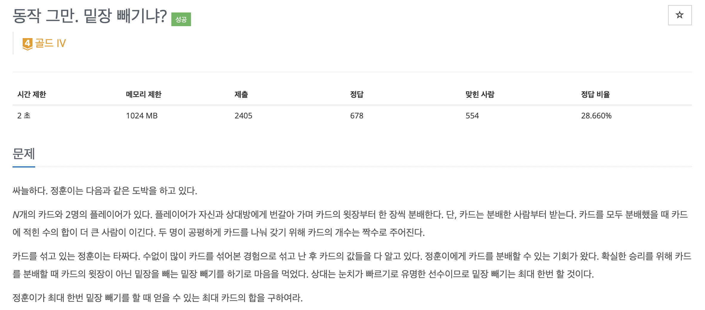 score += A[N - 1]  # 밑장 빼기 성공하면 마지막 카드 얻음