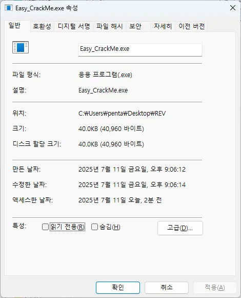 Easy_CrackMe.exe의 파일은 다음과 같다.