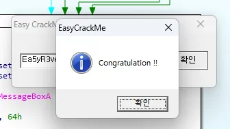 결국 지금까지 나온 값들을 종합하면 ‘Ea5yR3versing’ 이 정답이 되게 된다.
