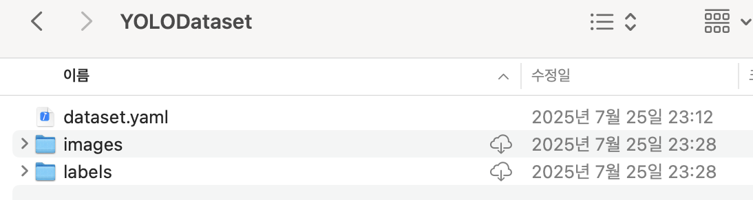 만들어 두었던 YOLODataset 폴더를 그대로 사용할 것이며, 필자의 환경은 Apple M2, MPS를 사용해서 진행하며, Python 3.9.6 버전을 사용하고 있다.
