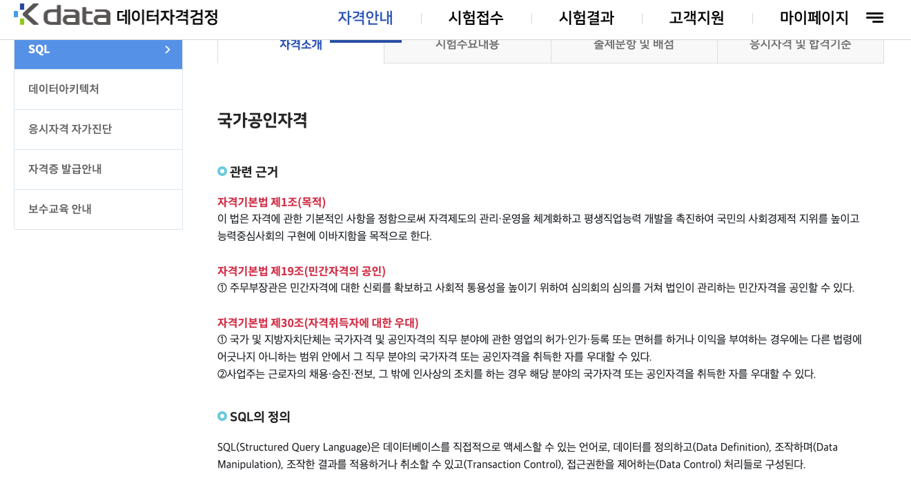 SQLD(SQL Developer)는 한국데이터산업진흥원(Kdata)에서 주관하는 국가공인 자격증입니다.