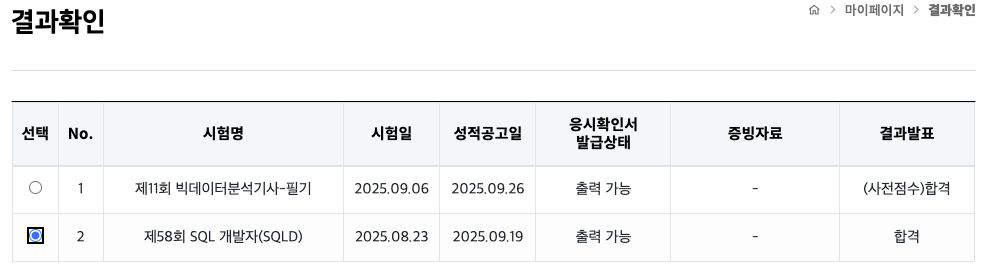 [58회] SQLD 합격 후기