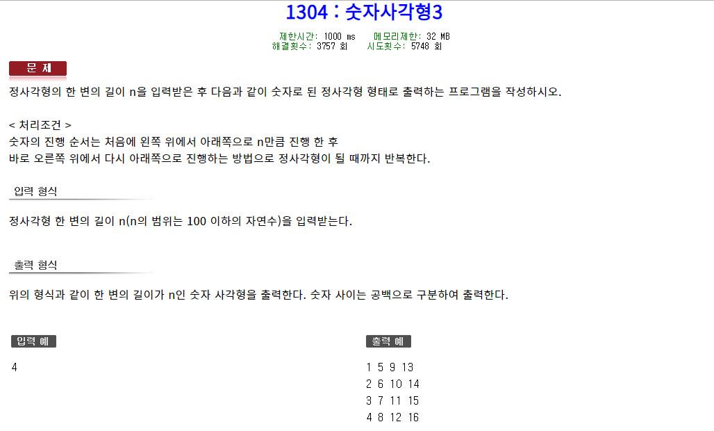 [정올] 1304 : 숫자사각형3 2019.11.22 17:52 Programming/C 글 작성자: pental image. Question 1304 1 2 3 4 5 6 7 8 9 10 11 12 13 14 15 16 17 18 19 20 21 #include <stdio.h> int main() { int i,j; int num = 0; scanf("%d",&num); int temp = 0; int count = 1; for(i = 0; i < num; i++) { temp = count; for(j = 0; j < num; j++) { printf("%d ",temp); temp += num; } printf("\n"); count++; } } cs https://github.com/kim-do-hyeon/jungol/blob/master/20191122_jungol_co_kr_1304.c kim-do-hyeon/jungol jungol.co.kr. Contribute to kim-do-hyeon/jungol development by creating an account on GitHub. github.com 공유하기 게시글 관리 포렌식 & 개발 이야기 - Forensics & Development 저작자표시 (새창열림) 'Programming > C' 카테고리의 다른 글 [정올] 2604 : 그릇 (0) 2020.03.27 [정올] 1314 : 문자사각형2 (0) 2020.03.26 [정올] 530 : 선택제어문 - 자가진단3 (0) 2019.11.21 [정올] 529 : 선택제어문 - 자가진단2 (0) 2019.11.21 [정올] 528 : 선택제어문 - 자가진단1 (0) 2019.11.21 댓글 공유하기 다른 글 댓글 이 글 공유하기 구독하기 구독하기 카카오톡 카카오톡 라인 라인 트위터 트위터 Facebook Facebook 카카오스토리 카카오스토리 밴드 밴드 네이버 블로그 네이버 블로그 Pocket Pocket Evernote Evernote 다른 글 [정올] 2604 : 그릇 [정올] 2604 : 그릇 2020.03.27 [정올] 1314 : 문자사각형2 [정올] 1314 : 문자사각형2 2020.03.26 [정올] 530 : 선택제어문 - 자가진단3 [정올] 530 : 선택제어문 - 자가진단3 2019.11.21 [정올] 529 : 선택제어문 - 자가진단2 [정올] 529 : 선택제어문 - 자가진단2 2019.11.21 다른 글 더 둘러보기