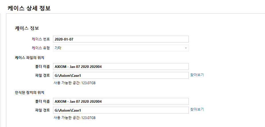케이스 번호, 케이스 유형, 케이스 파일 저장 위치 등등을 입력할 수 있습니다.