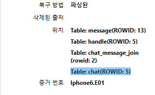 채팅 관련 부분에서는 IOS IMessage/SMS/MMS 등을 파악할수 있었습니다.