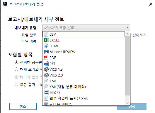 CSV / EXCEL / HTML / Magnet REVIEW / PDF 등으로 보고서를 내보낼수 있습니다.