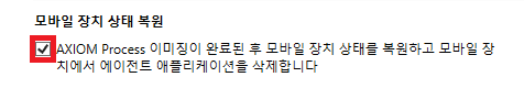 2. 이미징 > 장치 상태 복원 섹션에서 에이전트 응용 프로그램 제거 확인란을 선택