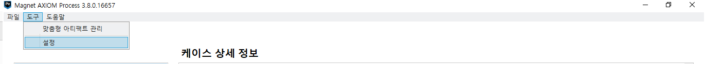1. Magnet AXIOM Process 도구> 설정을 클릭