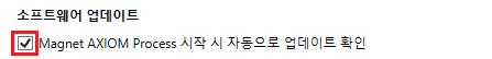 Magnet AXIOM Process가 시작될 때마다 자동으로 소프트웨어 업데이트가 있는지 확인한다.