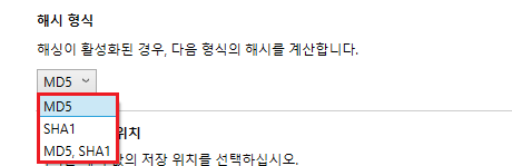 2. 해싱 > 해시 형식 섹션의 드롭다운 목록에서 사용할 해싱 형식을 클릭