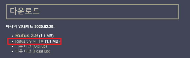 다운이 완료 되었으면 8기가 이상의 USB를 연결시켜주면 되겠습니다.