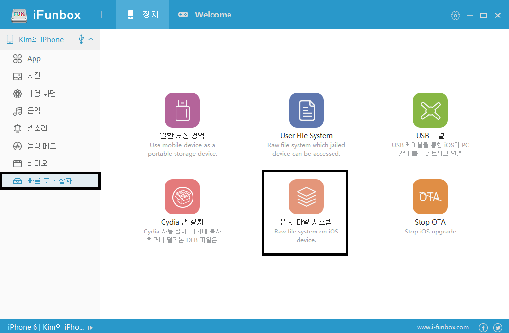 빠른 도구 상자를 선택한후 원시 파일 시스템 으로 접근해 줍니다.