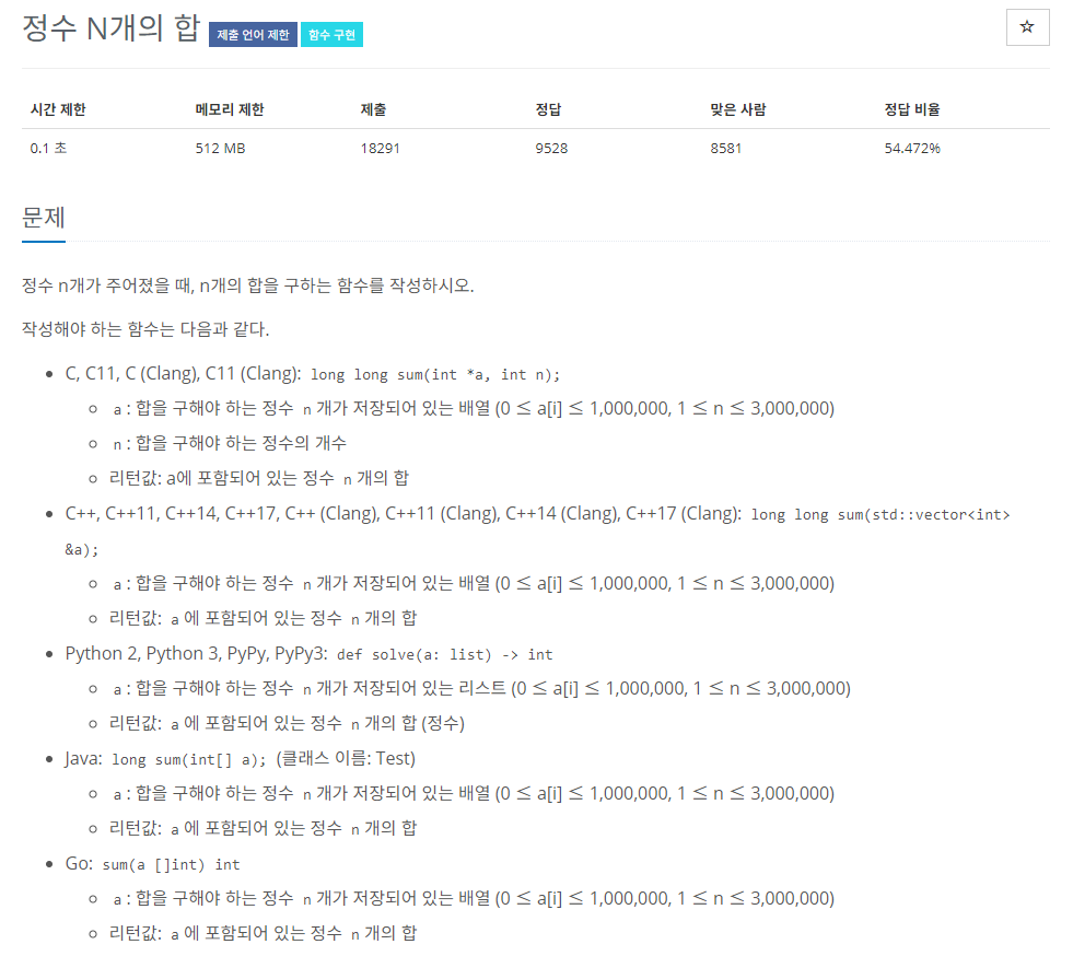 [백준] 15596 - 정수 N개의 합 (파이썬)