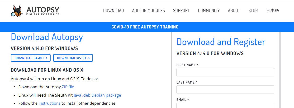Download Autopsy Version 4.14.0 for Windows Download 64-bit Download 32-bit Download for Linux and OS X Autopsy 4 will run on Linux and OS X. To do so: 3rd Party Modules 3rd party add-on modules can be found in the Module github repository. From this repos