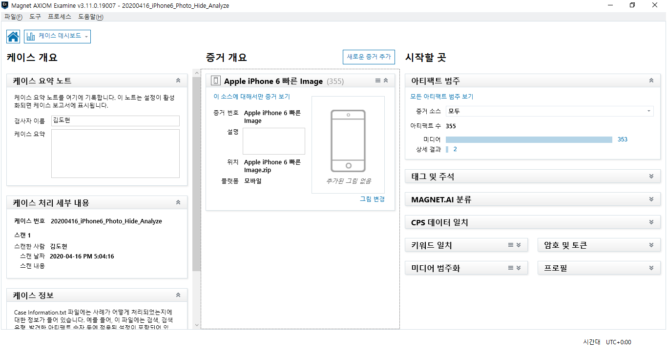 케이스 번호와, 케이스 유형, 파일 경로, 스캔한 사람에 대해서 작성해 주고, 증거 소스로 이동해 줍니다.