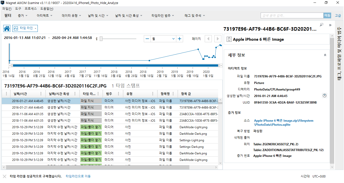 먼저 타임라인을 먼저 확인 해보았습니다. 2020년 1월 초부터 휴대폰에 사용량이 발생한것을 확인 할 수 있습니다. 사진 분석을 진행해 보도록 하겠습니다.