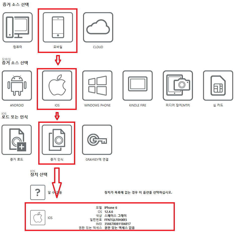 저는 미리 이미징을 떠두지 않고, 이미징과 동시에 분석을 진행해 보려고 합니다. 아이폰을 연결하고, 위 사진과 같이 증거를 탑재합니다.