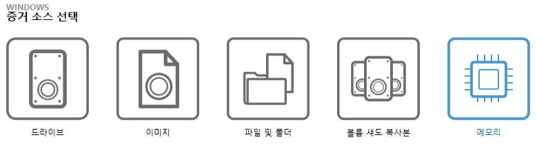 1. 증거 소스에서 컴퓨터 > 메모리를 클릭