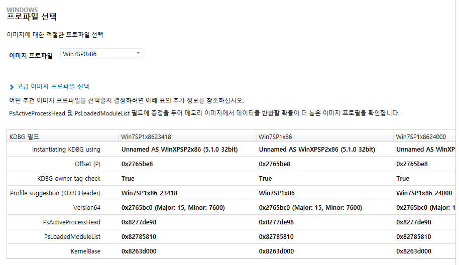 각 메모리 덤프에는 운영 체제에 따라 프로파일이 있습니다.