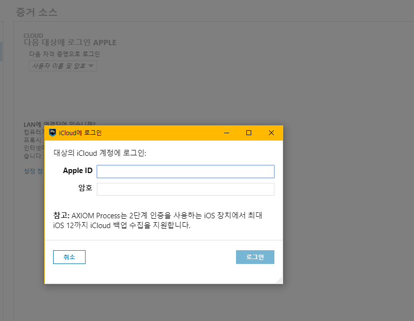 1. AXIOM Process의 증거 소스 섹션에서 Cloud를 클릭