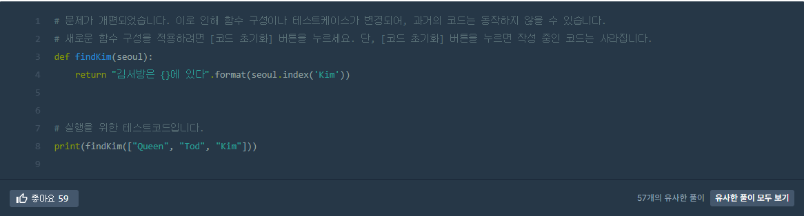문제에서는 리스트를 주어지고, 그 리스트 안에는 무조건 김서방이 존재한다고 한다.
