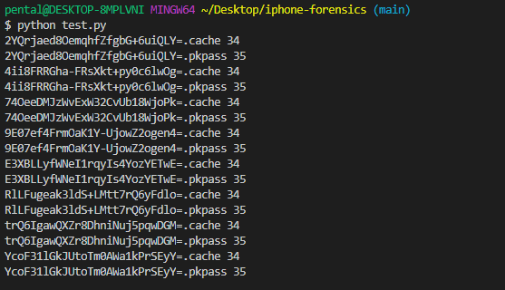 path = '/extract_file/HomeDomain/Library/Passes/Cards' wallet_pass_path = pathlib.Path(os.getcwd() + str(path) wallet_pass_list = os.listdir(wallet_pass_path) wallet_list = [] # Extract only .pkpass folder for i in wallet_pass_list : print(i , len(i))