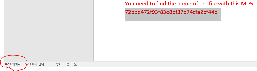 > 문서 8페이지의 "Daniel Ocean Bio.doc"은 MD5에 대한 참조입니다. MD5와 일치하는 파일의 이름은 무엇입니까?