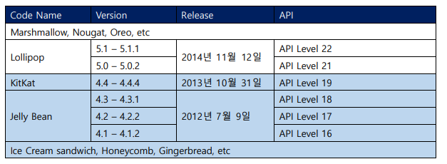 A는 2014년 3월에 안드로이드 기기를 구입하였기 때문에 당시 최신 릴리즈 버전인 KitKat 이하의 버전임을 유추해 볼 수 있다.
