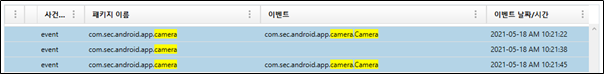 3. 해당 시간대를 조사한 결과 카메라 및 갤러리 앱 사용기록이 발견되었다.