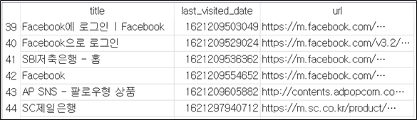 파일 경로 | /data/com.android.chrome/app_chrome/Default/History |