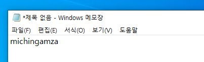 목적은 메모장에 띄워져 있는 메시지를 바꾸는거기 떄문에 메모장을 실행시키고, "michingamza"를 입력해두었다.