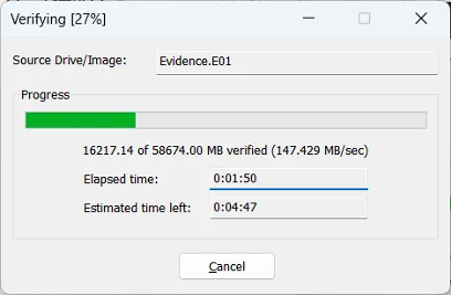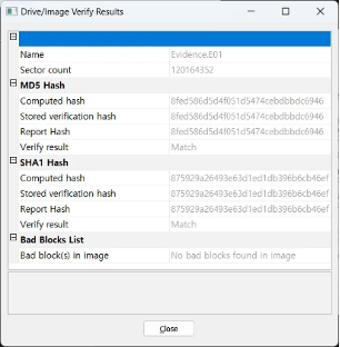 이미징 작업 과정은 위 [표 3]과 같으며, 이미징 된 이미지 파일과 원본 저장매체의 해쉬 값이 동일한 것을 확인되었다.