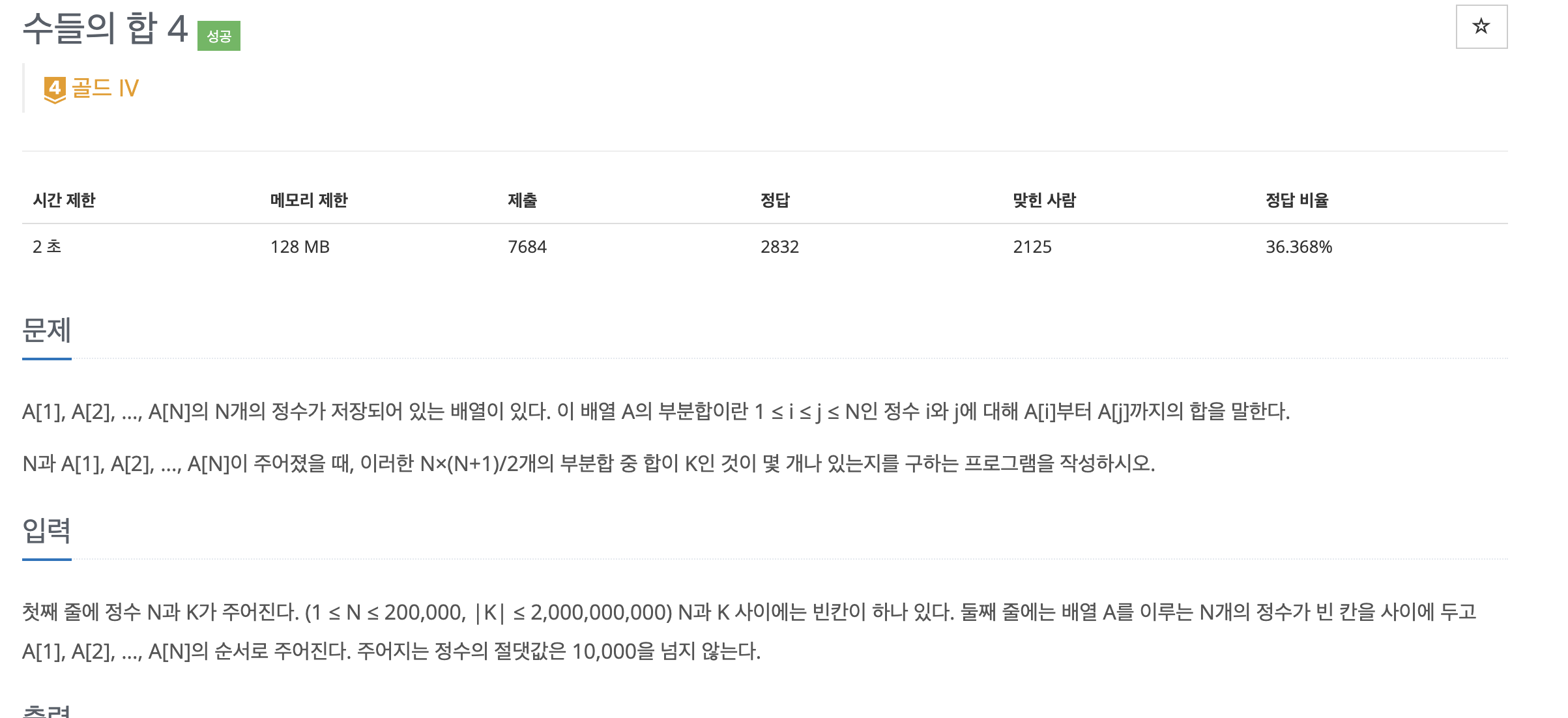 - psum[j] - psum[i-1] = K 를 만족하는 j를 찾기 위해 변형하면psum[i-1] = psum[j] - K 가 된다.