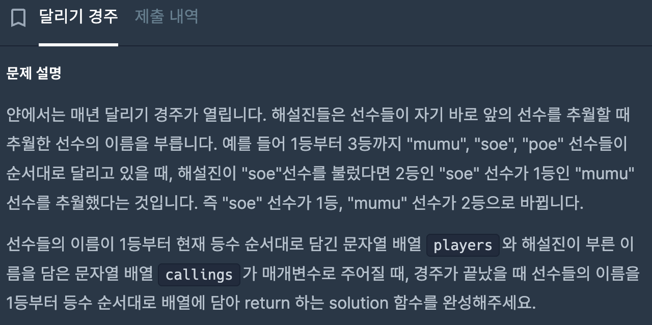 [프로그래머스] 달리기 경주