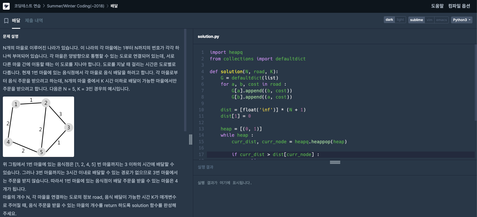 프로그래머스 - 배달 (파이썬)