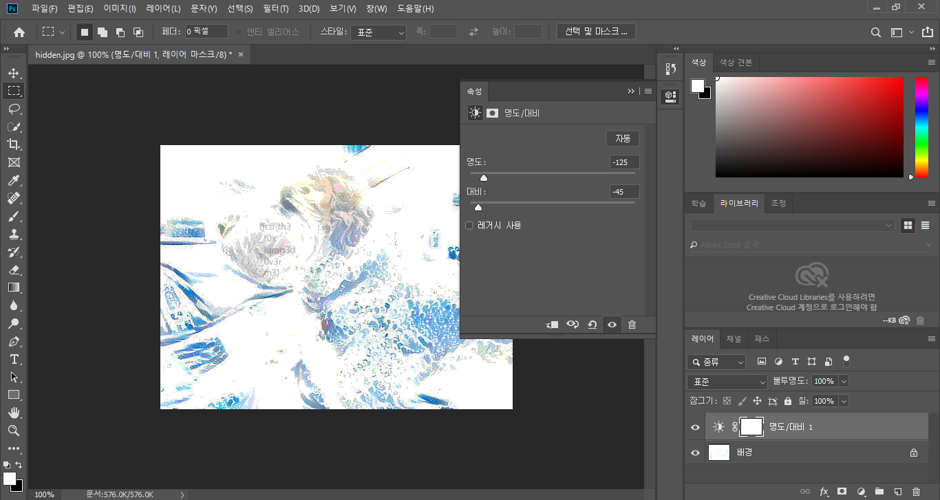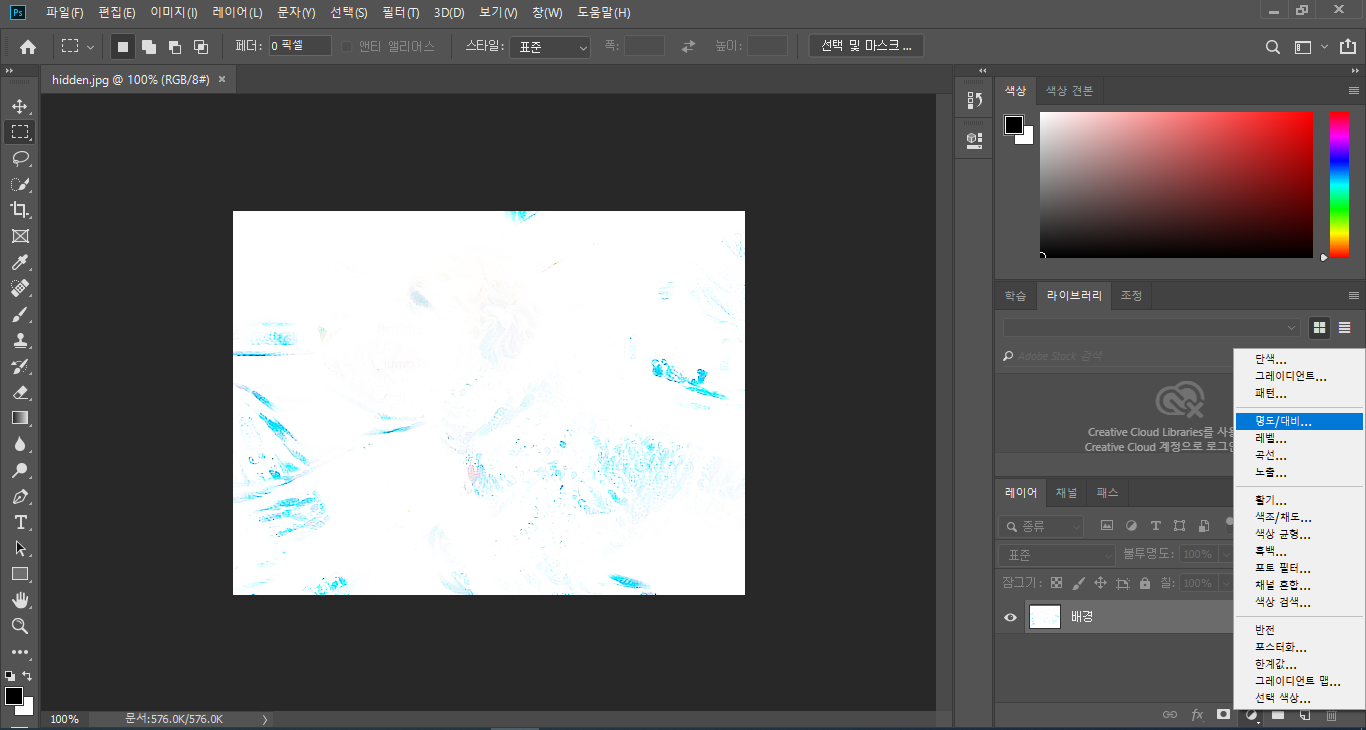 포토샵에서 Hidden.jpg 파일을 열어줍니다.