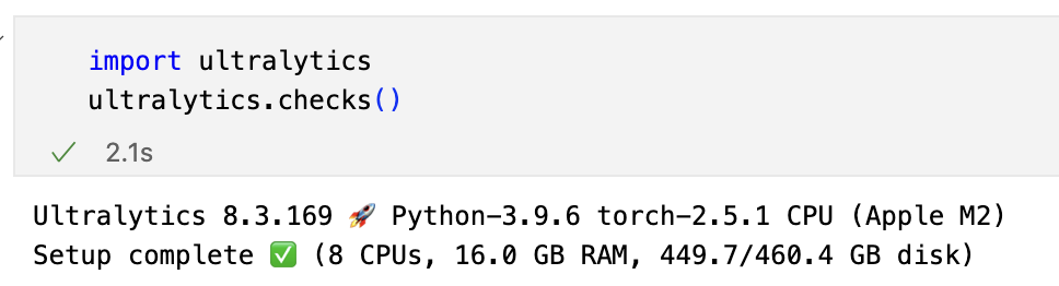 먼저 python pip를 통해서 ultralytics를 설치한다. 설치에는 꽤나 많은 시간이 소요된다.