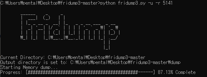 Safari의 PID는 5141이다. fridump를 통해 dump를 시작한다. (명령어를 알고있을거라 생각해 더이상의 설명은 생략한다.)