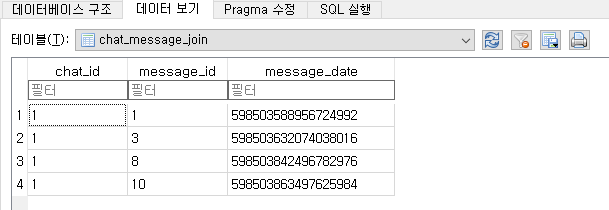 chat_message_join 테이블에서는 메시지를 보낸 시간을 확인 할수 있는걸로 추측됩니다.