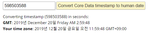 coredata Timestamp -> DATE 로 바꾸는 사이트 입니다.