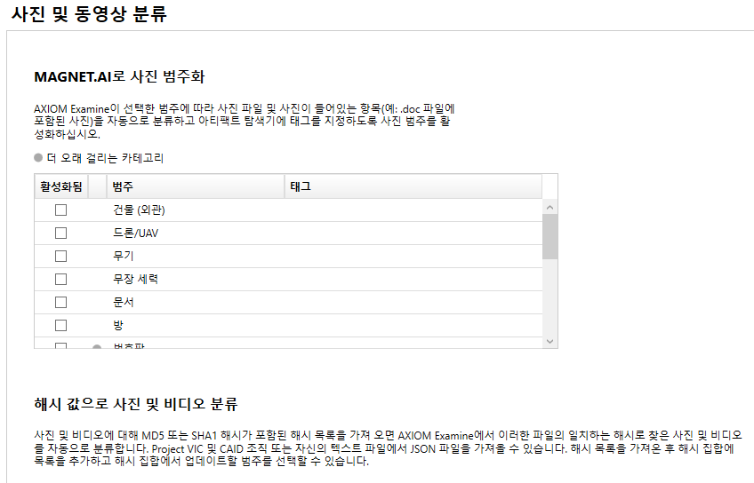 Magnet Axiom Process 이미지, 드라이브, 파일 및 폴더 및 기타 소스를 검색해 사용자의 사건과 관련된 증거를 찾을 수 있다. 특정 아티팩트 또는 아티팩트 그룹을 선택하여 검색을 맞춤 설정할 수 있으며 검색할 키워드 또는 해시 값을 제공할 수 있다. 라고 설명되어있다.