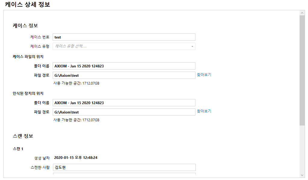 (참고: 기존 사례에 증거를 추가하기로 선택한 경우 사례 번호, 검색 유형, 키워드 목록 등과 같은 특정 정보는 원본 스캔의 설정에 따라 잠긴다.) 참고하도록 하자.