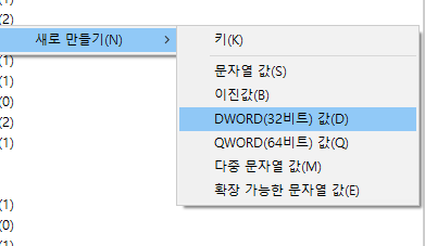 3. 시스템을 마우스 오른쪽 버튼으로 클릭하고 새로운 > DWORD 값을 클릭