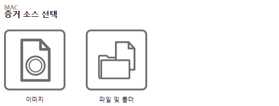 이미지 파일 업로드 또는 파일 및 폴더 선택, 2가지의 선택권 밖에 없다. Mac Memory Forensics 기능도 있었다면 좋았을 텐데,,