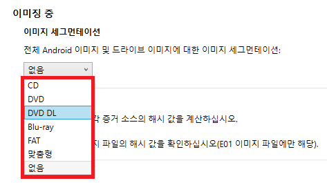 - Android 및 드라이브 이미지에 대한 세그먼트 생성